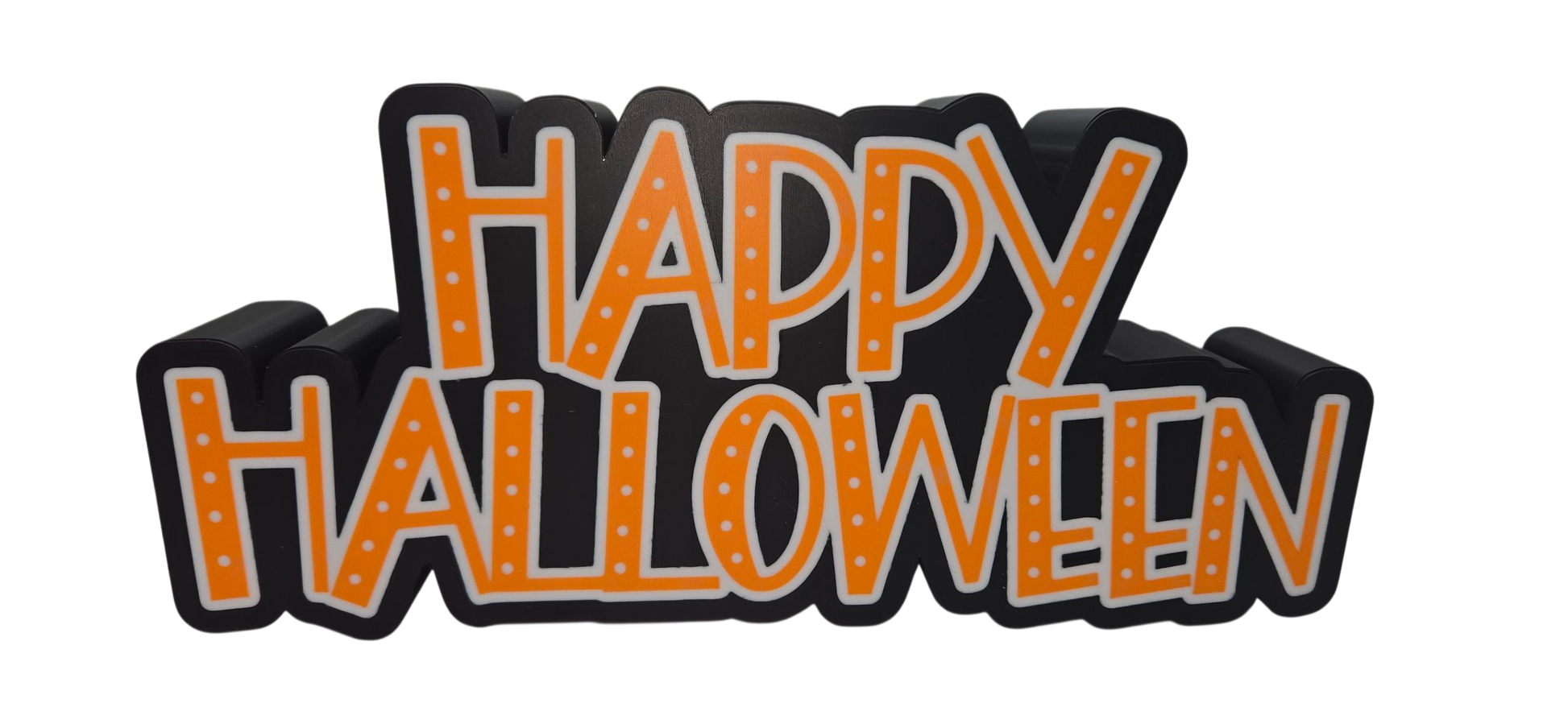 ‘Happy Halloween’ sign with a built-in USB LED light—freestanding or wall-mount for a cozy spooky glow.